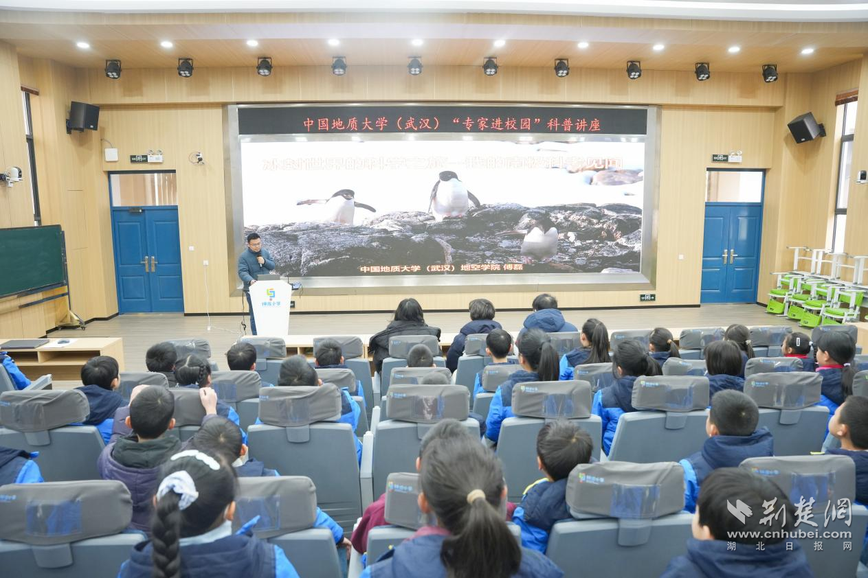 荆楚网(湖北日报网)讯(记者林杉 通讯员邓晓慧)1月21日,中国地质大学(武汉)地球物理与空间信息学院傅磊教授走进武汉经济技术开发区神龙小学,为学生们带来一场题为《冰封世界的科考之旅》的南极科普讲座。曾亲身参与南极科学考察的傅磊,用第一手资料与照片,将遥远的冰雪世界带到学生面前。